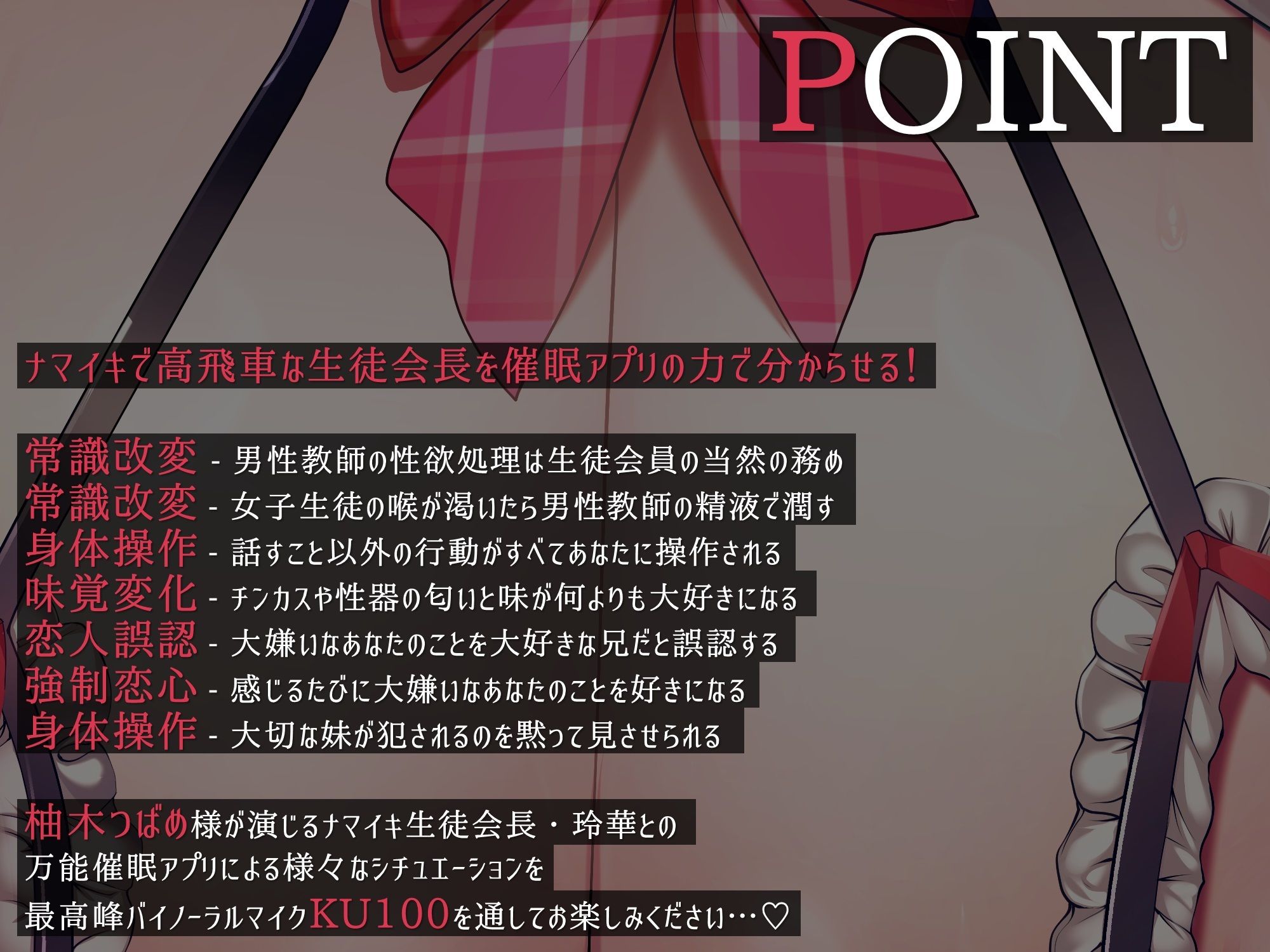 【KU100】CV柚木つばめ様 催●アプリの力でナマイキな巨乳生徒会長に好き放題いたずらするお話です。常識改変耳舐め手コキ/ディープキス/チンカスくんくん/顔射/チンカスとチン毛入り精液ごっくん/身体操作で強●フェラチオ/口内射精/口内放尿/人物誤認/ラブラブ処女セックス/中出し直前に催●解除/パイズリ/チンキス/「よし」の合図でがっつきフェラ/処女アナルセックス/スパンキング/ケツ穴中出しアクメ/寝取られ/NTRマゾ豚お射精etc…