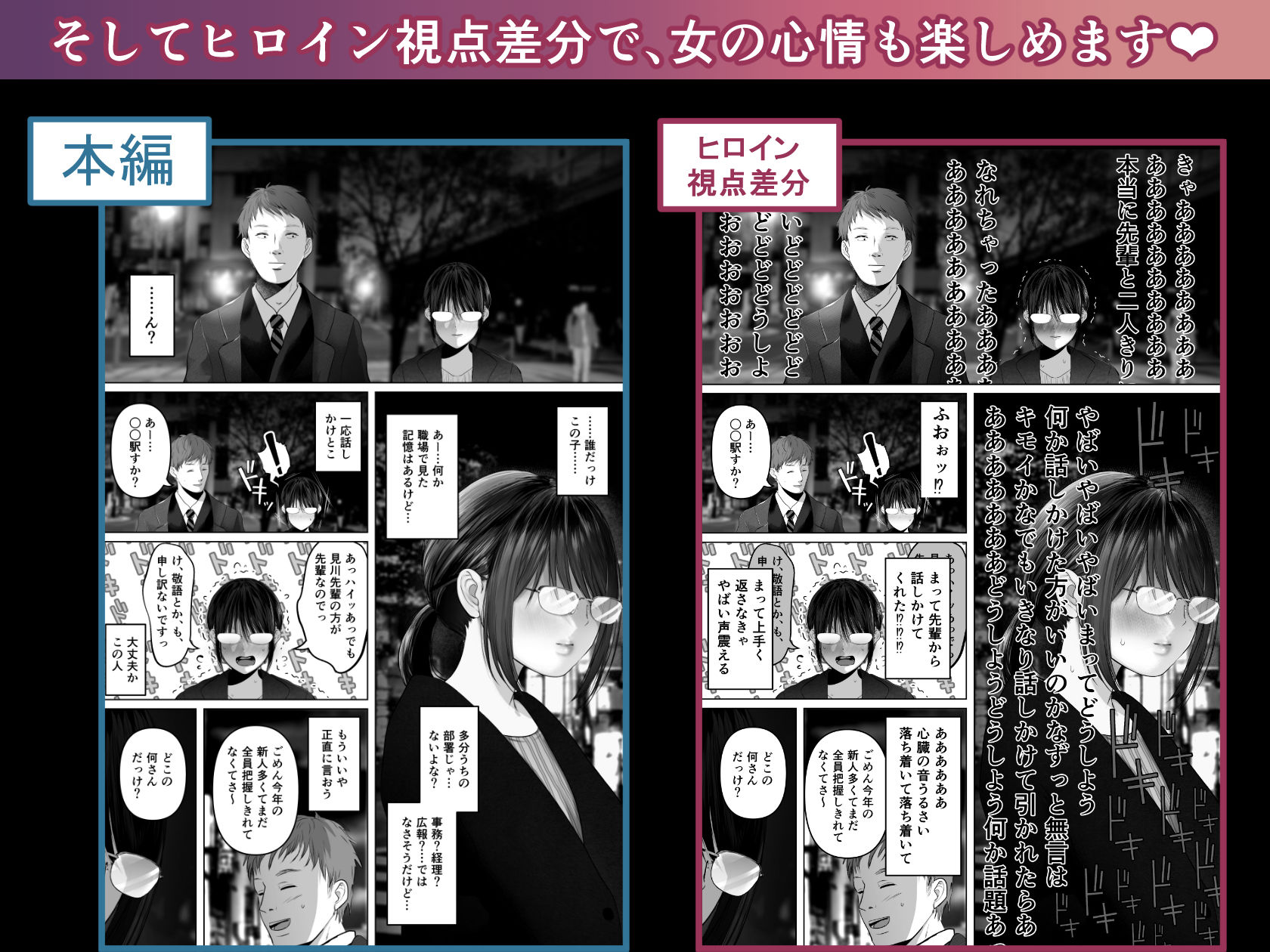 ★また、ヒロイン視点では、どういった気持ちで彼女持ちの男とsexをしたのか知る事ができ、違った視点から楽しめると思います。